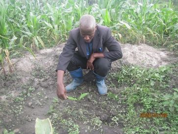 Maize planting is carried out manually by workers using hand hoes rather than tractors. For this reason, the maize is not planted in perfectly straight rows as it would be with mechanized farming.